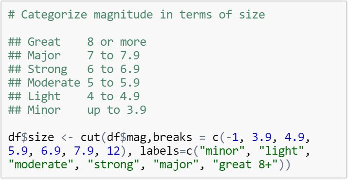 - Retrieve the latest version of data available from USGS website. Data comes in a .csv file and reports quakes for the past 7 days (check the exact URL in the R code).